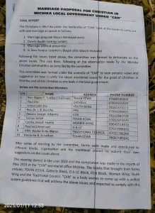 The Christian Association of Nigeria (CAN) has released a full list of approved items required for marriage for Christians in the Michika Local Government Area of Adamawa State.